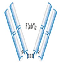 兩個Fab通過二硫鍵連接形成F(ab)2。分子量在~100kDa。2011年FDA批準(zhǔn)的Centruroides(Scorpion)Immune?F(ab)2是治療蝎毒的F(ab)2抗體片段。