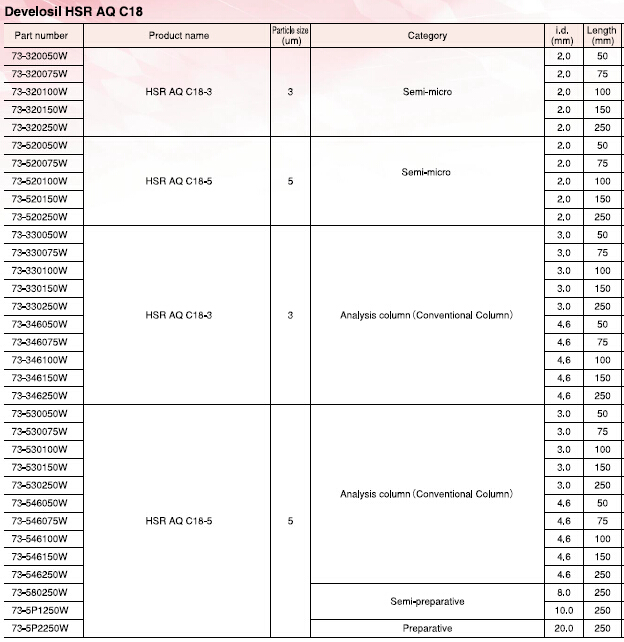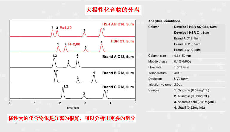 HILIC模式的柱子,但是,我們可能更傾向于在分析的時候用類似的反相柱。因此,Develosil HSR AQ C18C1柱,應運而生!