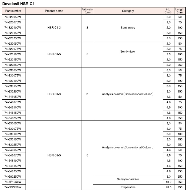 所有的Develosil系列色譜出均出自野村化學。因此,質量控制有嚴格的要求,批次之間有著極高的重現性。