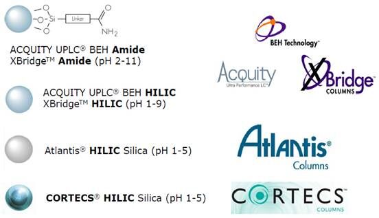 1. HILIC柱是親水相互作用色譜柱 2. 保留和分離極性化合物,如強(qiáng)極性堿或含胺的極性有機(jī)物等 3. HILIC提供與反相色譜柱互補(bǔ)的分離選擇性 | 1. 反相方法無法保留強(qiáng)極性化合物的用戶 2. 需要與反相色譜柱互補(bǔ)選擇性的用戶 3. 期望提高質(zhì)譜響應(yīng)與檢測靈敏度的液質(zhì)聯(lián)用的用戶 |