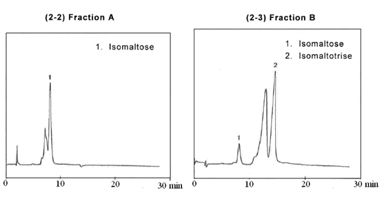 糖類的分離通常用到的是乙腈/水做流動相。當乙腈的含量增加,保留因子k’增加。但是乙腈的含量需要仔細的控制,因為隨著乙腈含量的增加,樣品的溶解性會變差。