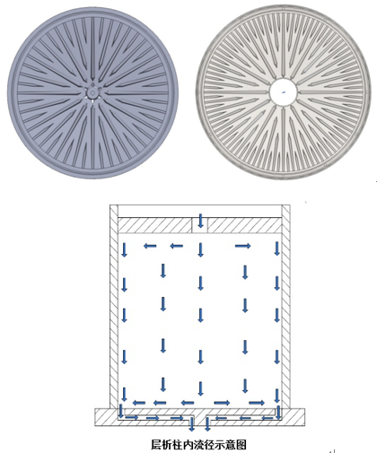 分配器按照現(xiàn)代機(jī)械設(shè)計(jì)先進(jìn)理念進(jìn)行的,流體動態(tài)仿真、優(yōu)化設(shè)計(jì)、可靠性設(shè)計(jì)、虛擬設(shè)計(jì)、三維造型、產(chǎn)品全壽命周期設(shè)計(jì),使得產(chǎn)品性能得到有一種單一的中央噴口和一種徑向?qū)Я鞑邸7乐眹姷膰娍谂c導(dǎo)流槽做在了一起,定位在每個單元的中心,防止噴出的液體直接進(jìn)入柱管而不通過分配器。獨(dú)特的分配器設(shè)計(jì),保證所有流徑長度相同,從而更有效地保證分配效果。