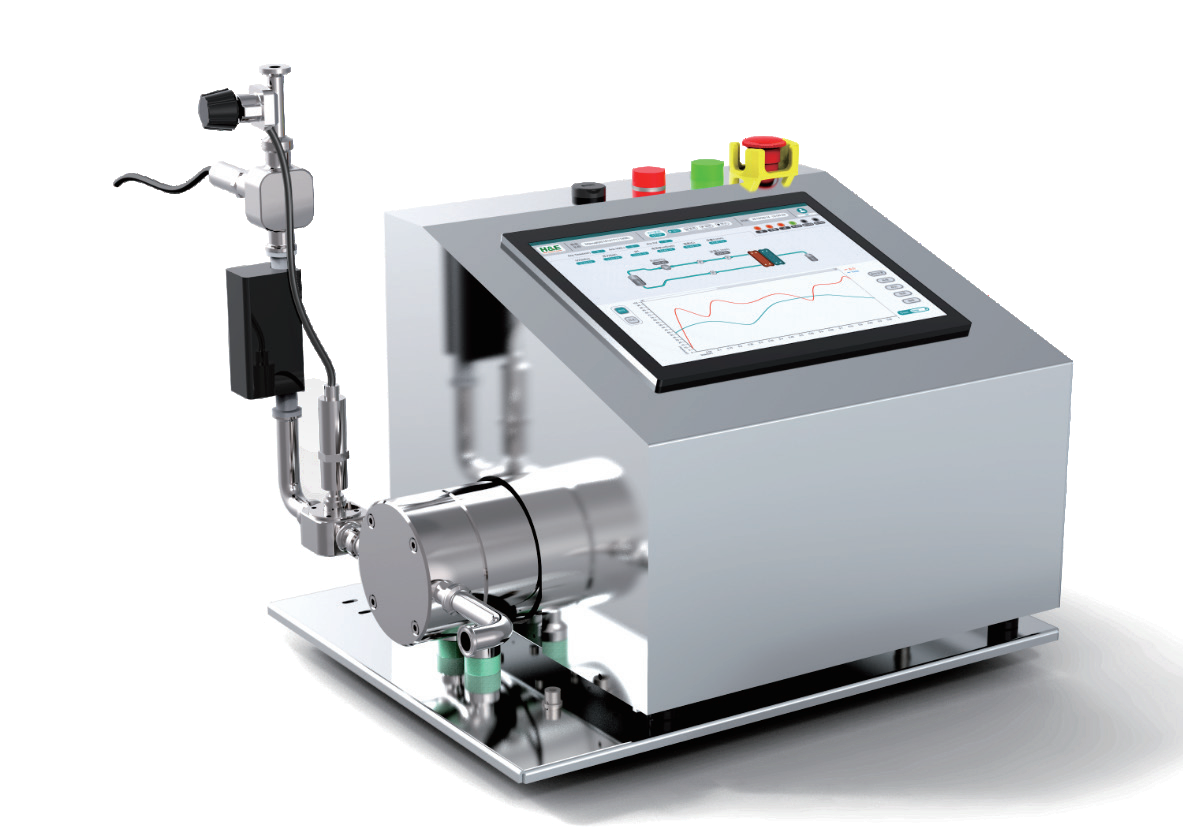 ? ?QuikSep SF簡易超濾系統(tǒng)設(shè)計全面符合cGMP,采用德國QuattroFlow隔膜泵,控制界面采用彩色觸摸屏,顯示泵速等信息,能實時監(jiān)測壓力及TMP變化,透過端紫外變化,并可設(shè)置各參數(shù)報警值,也可實現(xiàn)恒壓運行或恒定TMP運行,保證工藝可控性。