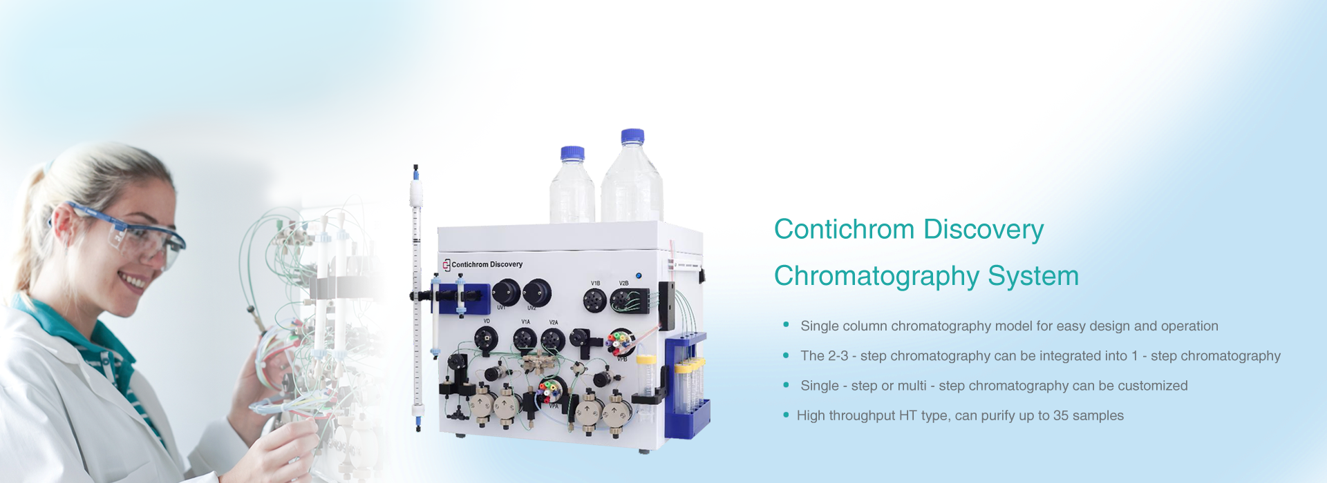 Contichrom discovery fully automatic chromatography system is a chromatography system with integrated purification function developed and produced by chromacon company. It can run a single column chromatography mode that is easy to design and operate, or integrate 2-3-step chromatography into one-step chromatography, equipped with special guide software.
